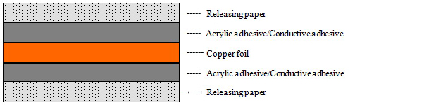 双面双导铜箔胶带:厚度范围0.025mm,0.035mm,0.05mm,0.075mm,0.08mm,0.1mm