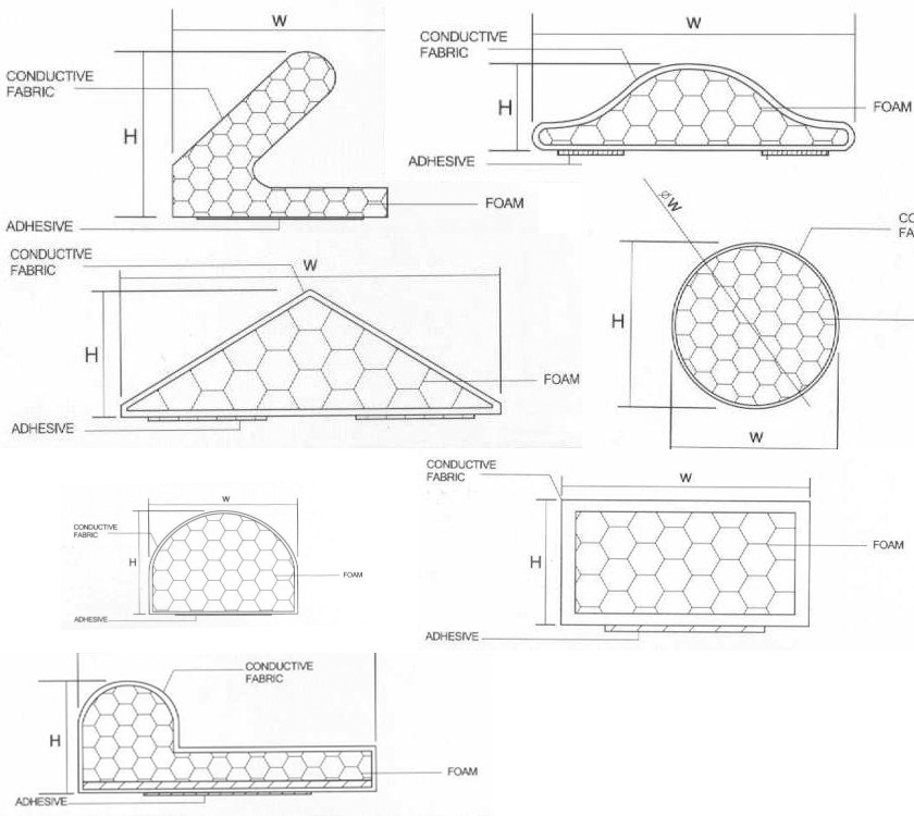 在阻燃海绵上包裹导电布,经过一系列的处理后,使其具有良好的表面导电性,可以很容易用胶粘带固定在需屏蔽器件上。 有不同的剖面形状、安装方法、UL等级及屏蔽效能的屏蔽材料可供选择。起到缓冲吸震、电磁屏蔽、防静电和接地等作用。